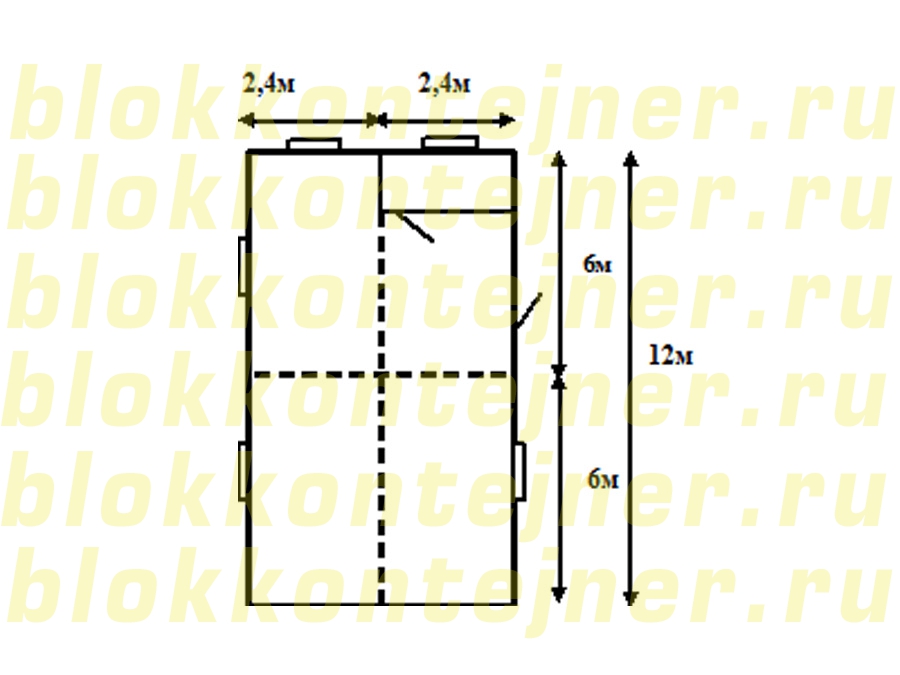 Модульное здание 12*4,8*2,5 м.-1шт,  состоит из 4-х  БК  6,0*2,4*2,5 м.